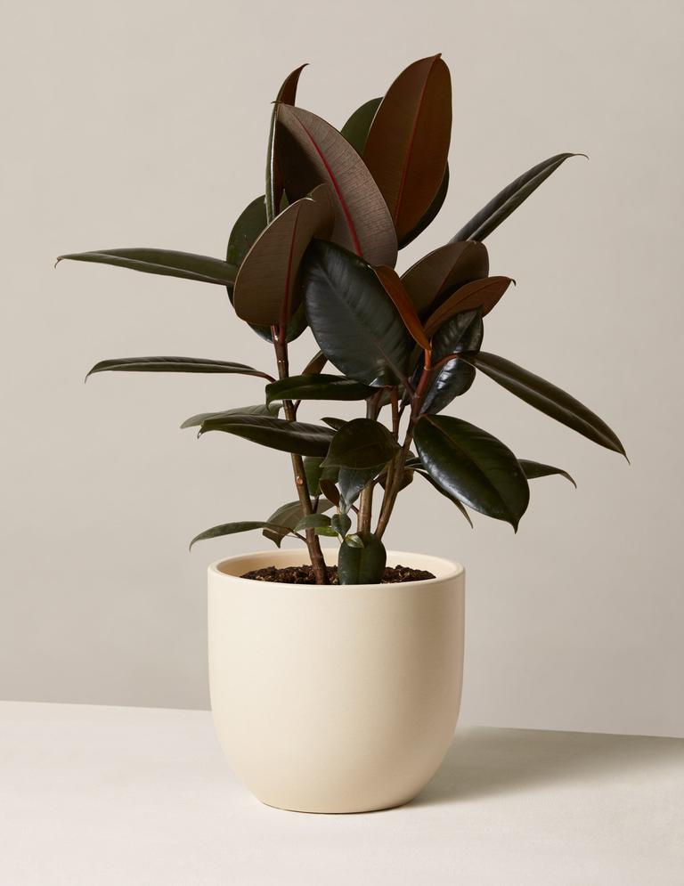 They like sunlight and water, so keep the soil moist in the warmer months. In the winter, give your guy some space. Because of their tough, broad leaves, rubber plants tend to collect dust, so spritz them, wipe them down, or even spray some PAM on those leaves for a gardener-approved oil change.
