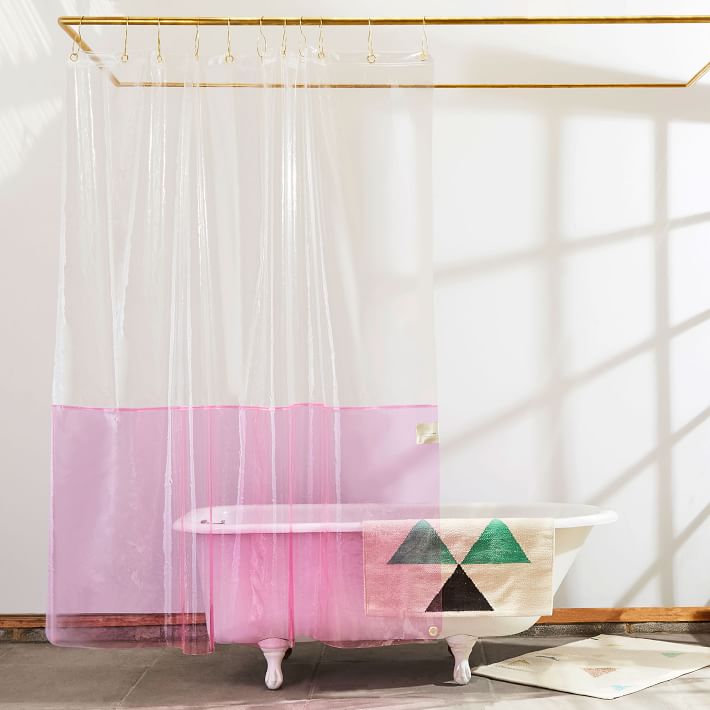 A creative way to make your bathroom feel bigger is by changing up the shower curtain itself. A clear curtain sounds like a dollar store buy that you use briefly post-move- in. But, clear curtains from Quiet Town are anything but.